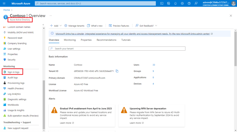 - Sign in to the Azure portal. Go to https://portal.azure.com and sign in with your admin account. Once logged in, search for or select Azure Active Directory from the menu.